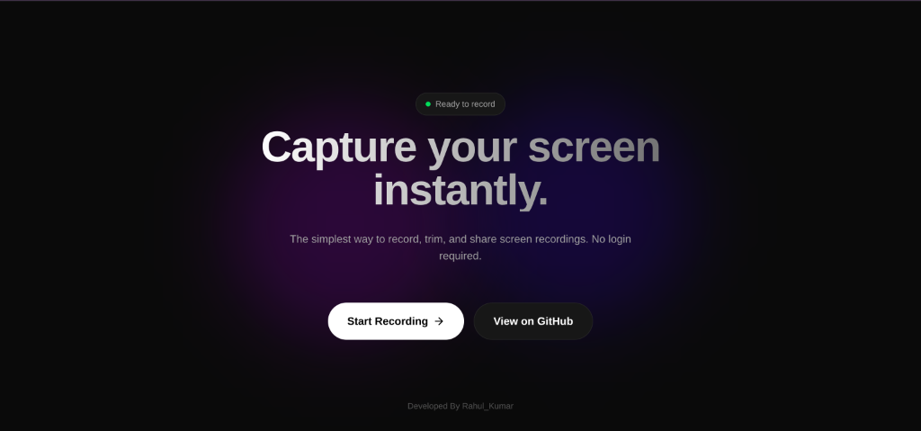 A modern, high-quality screen recording application with cloud storage, video trimming, and instant sharing capabilities. Features direct-to-cloud uploads and analytics.