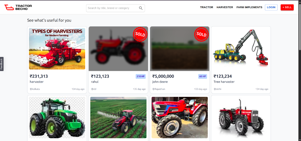 Built a responsive tractor marketplace with Next.js & ShadCN UI. Includes a robust Node.js backend with optimized SQL queries for high performance.